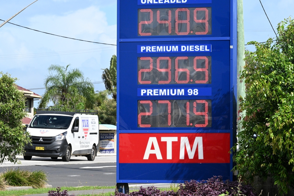 当地时间2026年3月23日,澳大利亚新南威尔士州巴利纳,加油站外显示的油价自伊朗冲突爆发以来大幅上涨。视觉中国 资料图